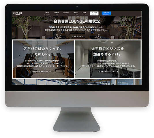 大手不動産ディベロッパーであるNTT都市開発様が手掛けるシェアスペース事業「LIFORK」の運営の根幹を担う管理システムとWEBサイトを統合したシェアスペースビジネスのための統合プラットフォームを開発。シェアオフィス・コワーキングスペース・貸し会議室・シェアラウンジなど多様なサービスを多拠点において展開しても、管理ツールひとつでトータルに管理運営可能なシステムを構築。僅かな人員で最大の効果が発揮できるシステムとWEBサイトの構築・運営に取り組んでいます。